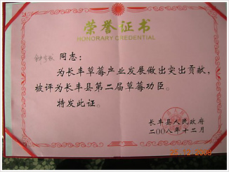 2008年12月 中央电视台农业第七频道接受长丰县颁发之第二届草莓功臣奖